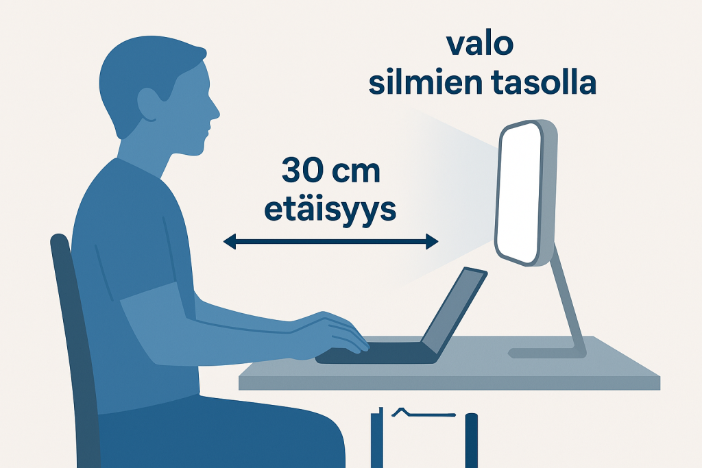 - 20–30 minuutin valohoito riittää, jos valoteho on ≥ 10 000 lux